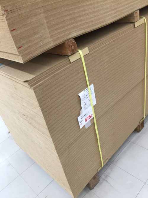 あと、今注目しているのは、吸ホル養生材と呼ばれる紙系の材質でおそらくできているボード。結構硬くて、でも薄くて、コンパネよりは軽い。
